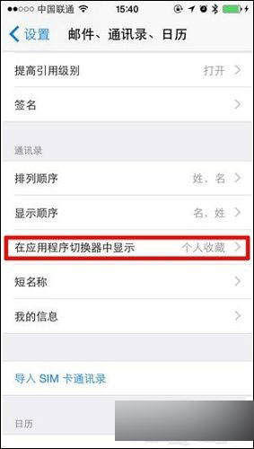 1、依次进入设置>邮件、通讯录、日历中,找到“在应用程序切换器中显示”。