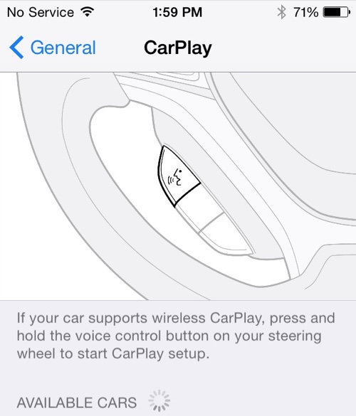 下图中的 CarPlay 设置位于设置应用的通用功能,在 Siri、Spotlight 搜索、Handoff 和建议应用下。目前,iPhone 只能通过 Lightning 接口与 CarPlay 连接。