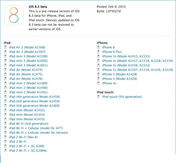 苹果今天发布了 iOS 8.3 第一个测试版,而一周前发布的 iOS 8.2 第五个测试版也正在测试之中。iOS 8.3 的编译号为12F5027d,这次发布的还包括 Xcode 6.3 测试版以及 Swift 1.2。根据测试,iOS 8.3 似乎移除了 iCloud 照片图库的测试标识,并开始提供全新CarPlay 功能,也就是无线连接。