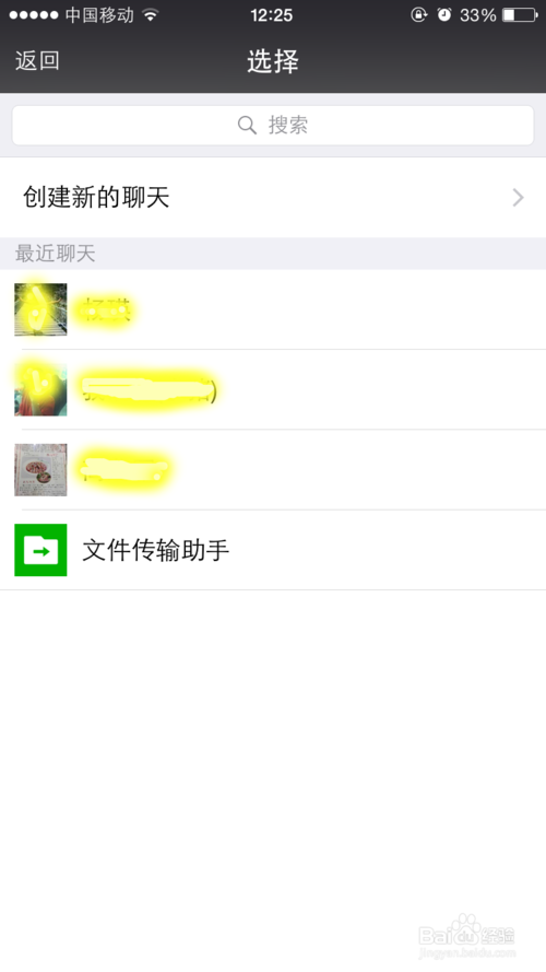 6、点击微信图标后,会转到微信界面,选择一个好友,将表情发送给他,我选择了最近聊天中的第一个好友