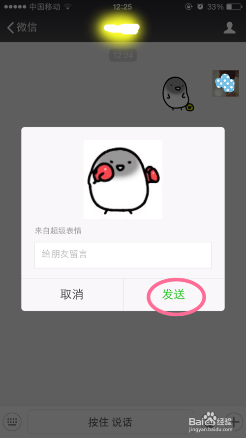 4、点击这个表情后,会弹出发送界面,点击发送