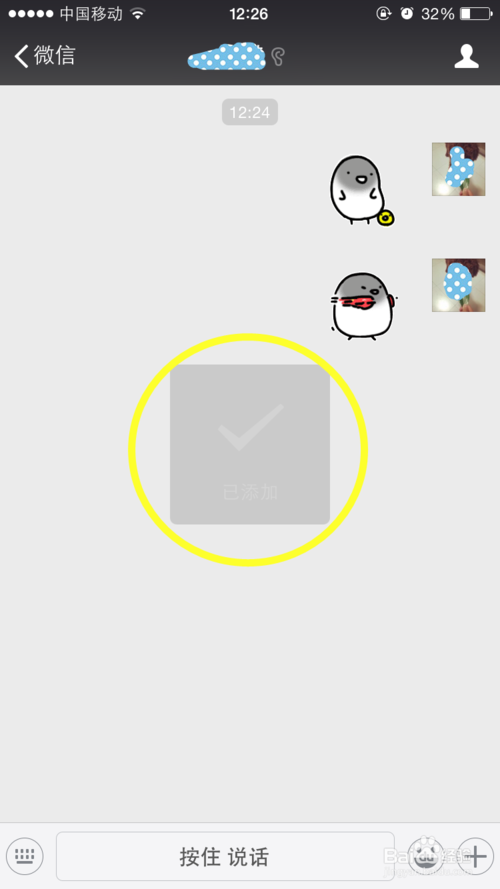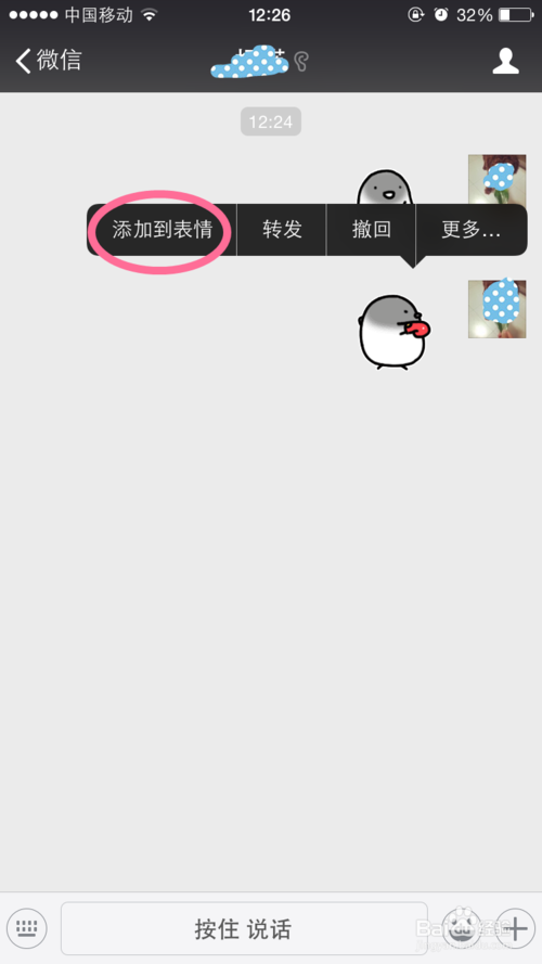 9、长按刚刚发出去的表情,会出现 图中显示的这一栏,选择 添加到表情