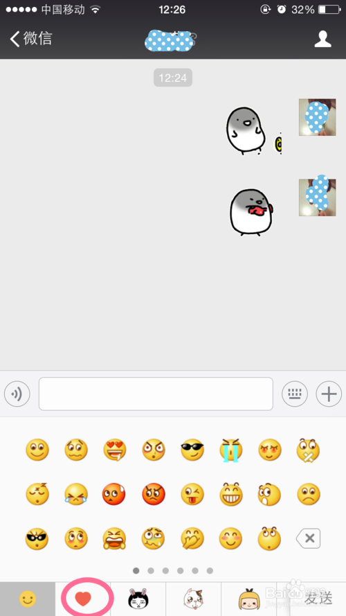 12、点击屏幕底部那一栏中的爱心,那个就是你自己添加的自定义表情库