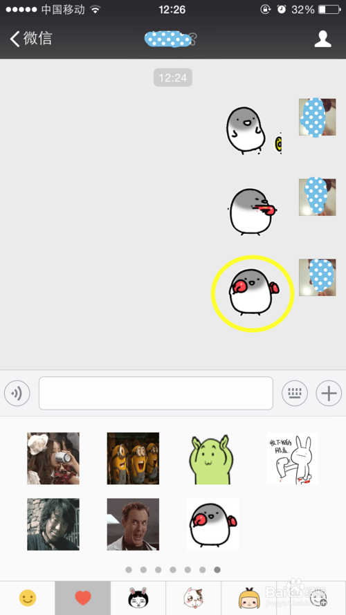 13、在自定义表情库中向后翻,新添加的表情在最后面,找到表情后,点击那个新添加的表情