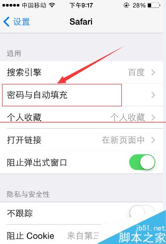 3、在Safari中我们看到有“密码与自动填充”选项,点击进行下一步。