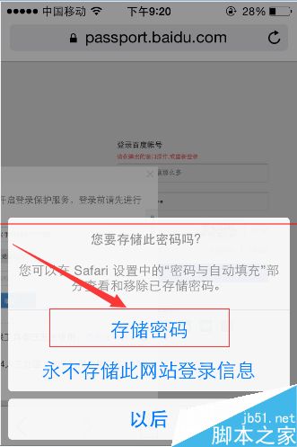 5、在下一次登陆网站的时候,还会要求你再次输一次账号和密码,不要烦躁,这已经是最后一次了。因为在你输完后点击登录,之后会出现如下的信息供你选择,只要选择存储密码就好了。以后就再也没有反复输入登陆信息的烦恼啦。