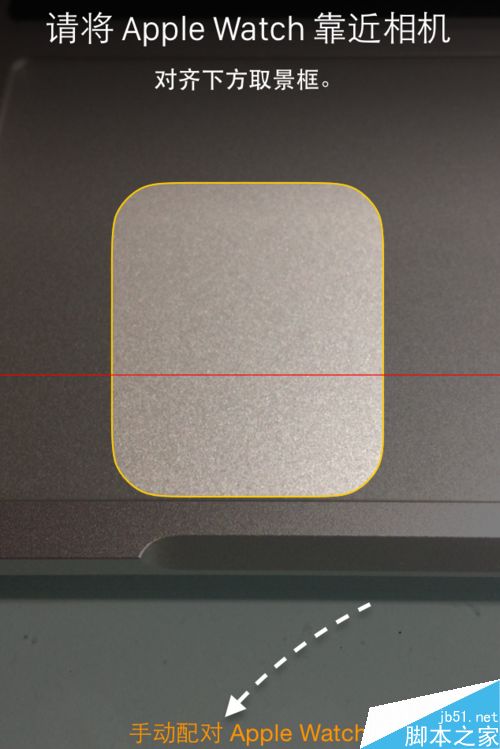 5、接下来 Apple Watch 应用会打开 iPhone 的摄像头,让我们把 Apple Watch 放到手机相机下取景,就好比大家平时扫描二维码一样。