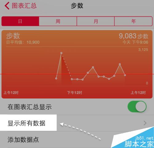 2、接着在步数的详细设置界面中,请点击“显示所有数据”一栏,如图所示
