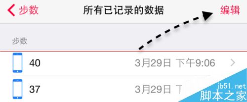 3、随后会显示我们当前所有的步数的数据,点击右上角的“编辑”按钮继续。