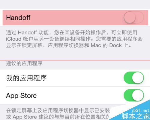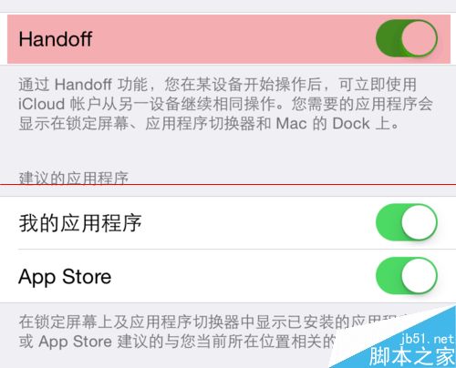 2、接着打开iPhone上的【Handoff】功能,在一般情况下,该功能都是默认开启的,你可以打开【设置】