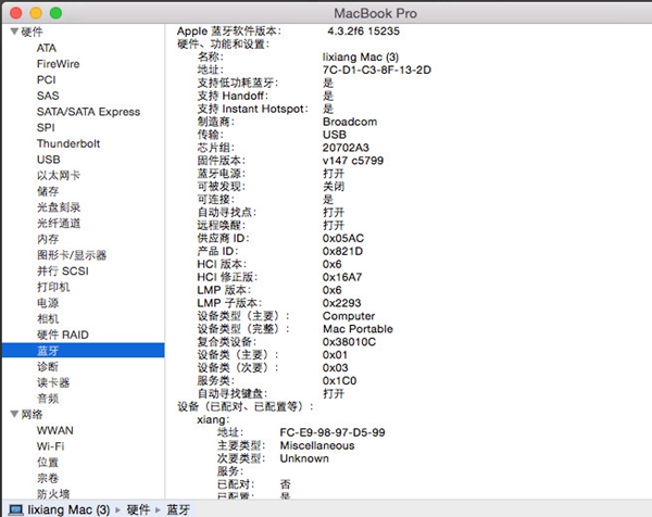 4、确保Mac是支持Handoff功能的(1)查看你 蓝牙- Handoff 这一项是否 写着“是” 是 既是 支持,如下图所示。