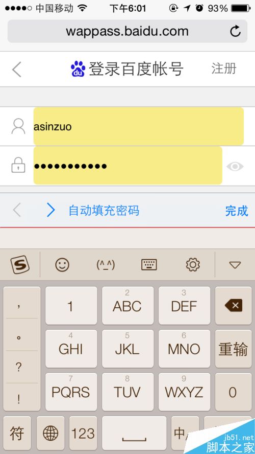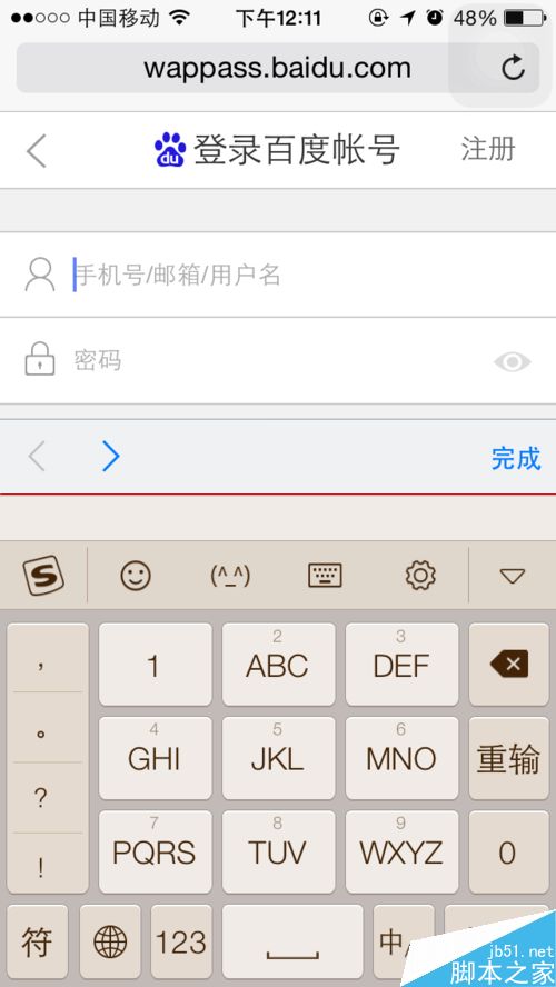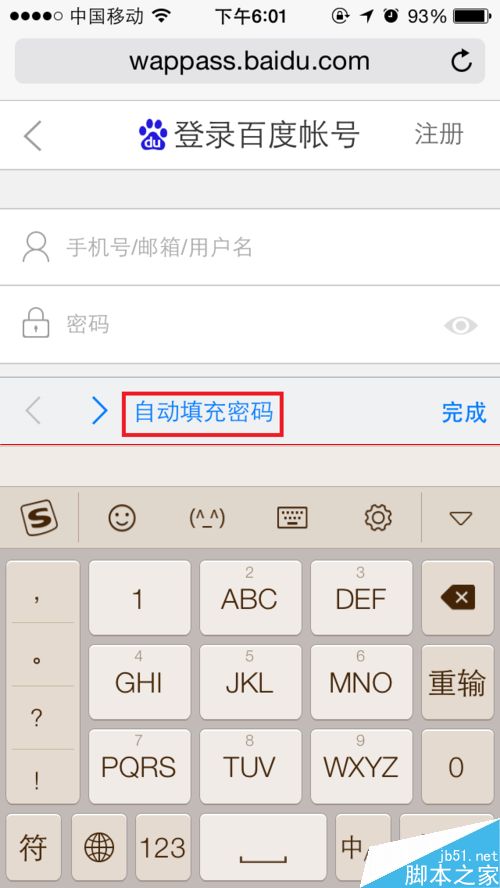 iPhone手机safari浏览器有个记住网页账号、密码的功能,但是由于某些原因,导致无法使用这个功能,使得每次都要重复输入账号、密码。一般的网站可以自动记住账号密码,不需要使用safari的这个功能,但是有的网站不会记住登陆过的用户,比如公司无线网登陆页面。下面以百度网站作演示。