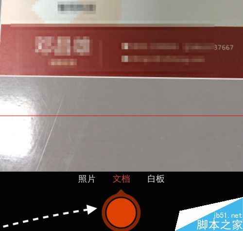 2、比如我在这里扫描一张名片为例,打开 Office Lens 以后,用相机对准想要扫描的名片。在底部我选择的是将此扫描作为文档处理,意思是在扫描以后,软件会将其中的文本信息识别出来。好了以后请点击“拍照”按钮,如图所示