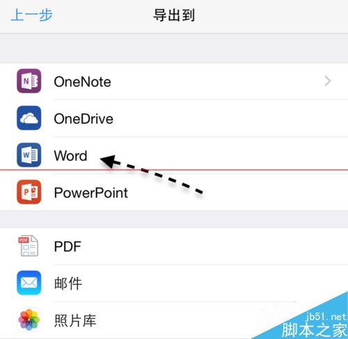 4、接下来 Office Lens 为我们提供了多种导出方式可以选择,可以保存到 OneNote、OneDrive、Word 等云服务中。我这里以保存到 Word 上为例,如图所示