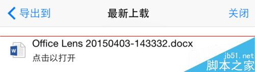 7、当上传完成以后,可以点击打开此文档。值得注意的是如果想要直接打开此文档的话,需要在 iPhone 上安装微软的 Word 办公软件。