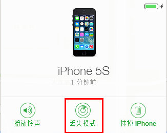 3、选择“丢失模式”,
