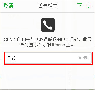 5、然后提示输入用于与你联系的备用电话号码,这里如果顺手输错成丢的那个手机号可以取消“丢失模式”重新输入;