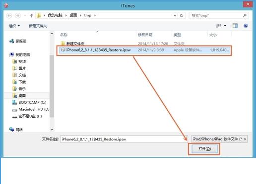 4.iTunes会弹出对话窗--请选择已经下载好的固件--点击更新--等待iTunes运行。