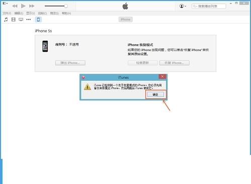 二、iTunes会自动检测到一台等待恢复的设备,点击确定:
