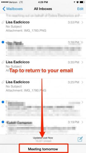 如果当你正在撰写一封电子邮件的时候收到一封新邮件的话,你大可不必放弃手中的工作就可以查看该邮件。具体来说就是,你可以对自己正在撰写的邮件使用从上往下滑的手势进行最小化,然后查看新邮件。在查看完毕后,你依旧可以通过点击电子邮件底部的方式再次调出尚未撰写完成的邮件。