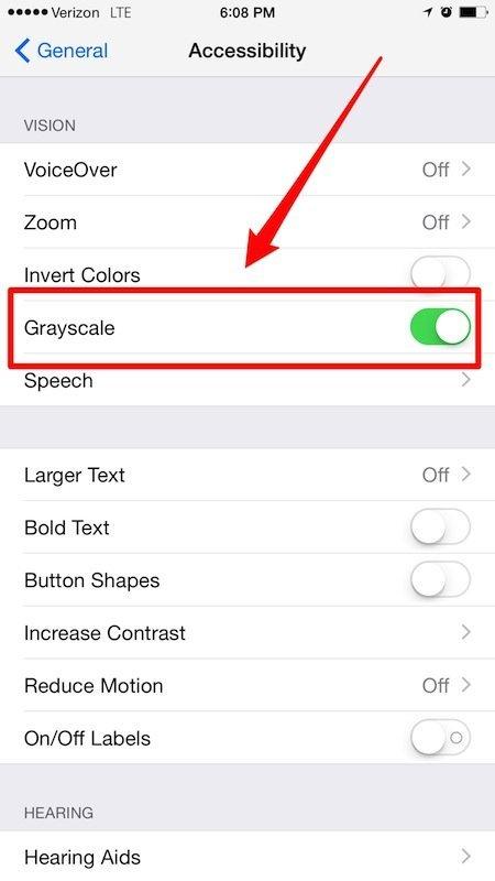 苹果其实早就在iPhone中为我们预置了一个省电模式,用户需要做的就是打开设置——通用——辅助功能,并打开“灰度”选项。在打开这一功能后,iPhone将成为一台彻头彻尾的黑白机,并帮我们节省不少的耗电量。