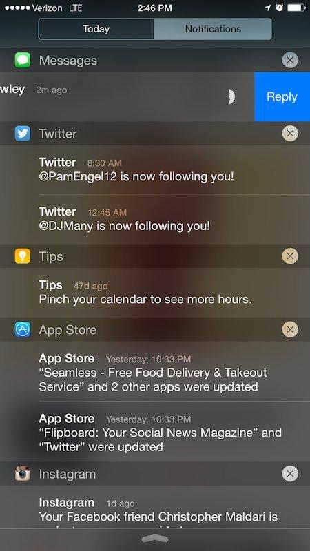 如果用户正处于应用或者锁屏界面的话,我们完全可以通过下滑手势进入通知中心,然后利用向左滑动的手势直接对短信进行回复。