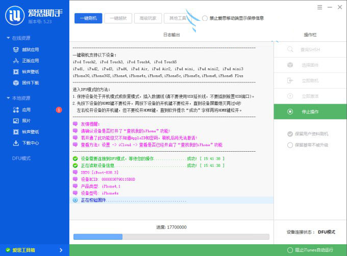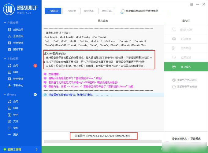 爱思助手iPhone6刷机方法步骤: