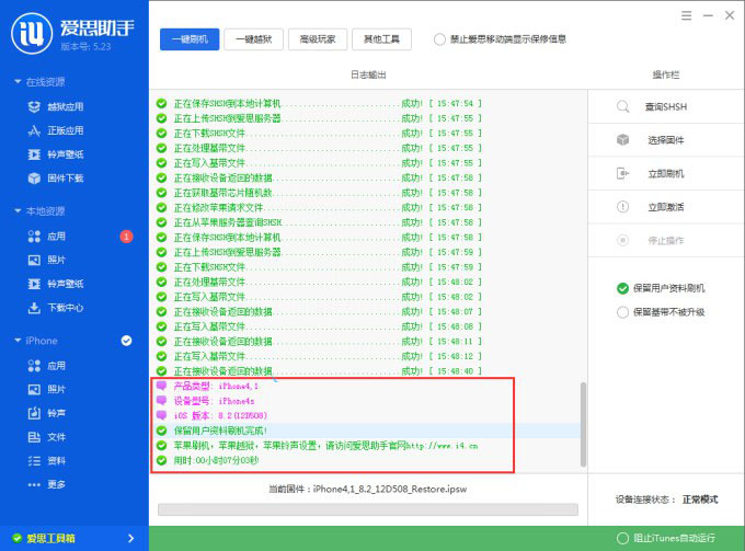 爱思助手iPhone6刷机成功