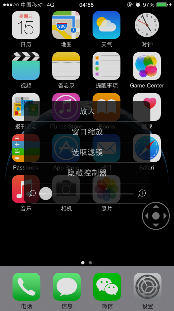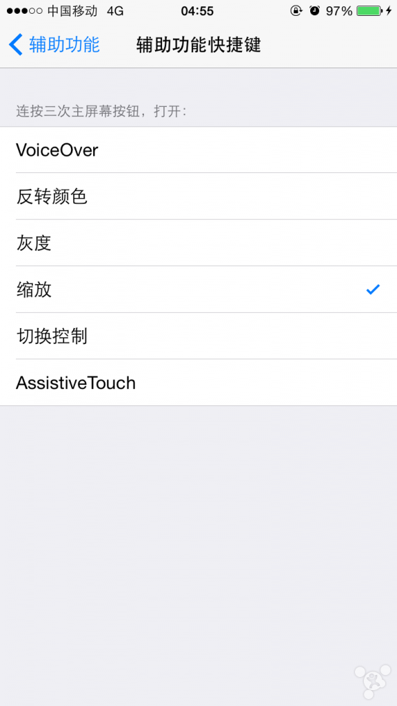 然后返回主屏幕,连按三下home键,会出现图5的设置项。