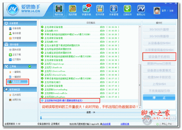 4、需要注意的是iOS 8.3暂时不支持越狱,已越狱用户谨慎升级;若刷机后出现应用闪退,使用爱思助手修复闪退即可。