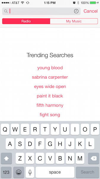 目前已发现,beta 2 的“音乐”应用中对 iTunes Radio 的搜索功能做了新的设计,能让用户搜索热门的 Radio 电台。类似于我们在 App Store 搜索时自动提示的“热门搜索”列表。