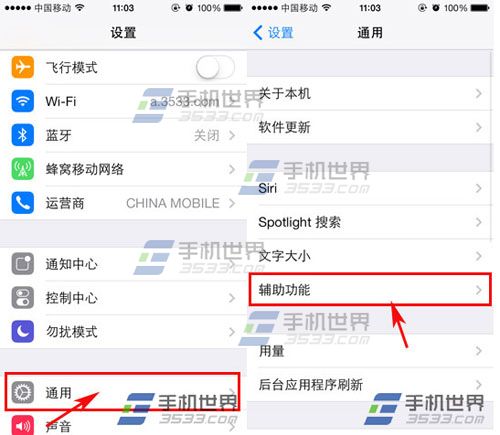 1)打开iPhone6Plus手机【设置】点击【通用】选择【辅助功能】。(如下图)