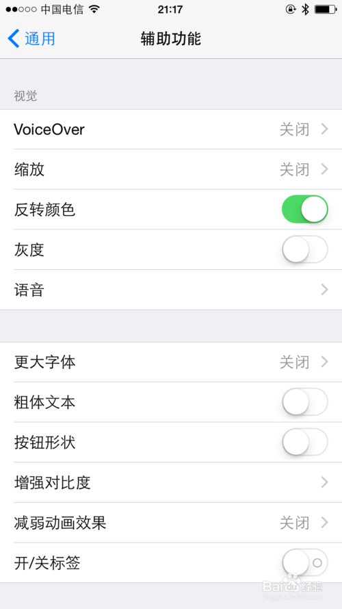 连续三下点击Home键,就可以看起灰度模式,是比较好的夜间模式