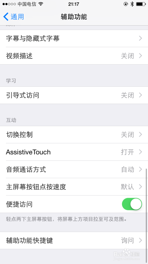 通用内找到辅助功能,可能不同版本的iOS位置会不一样