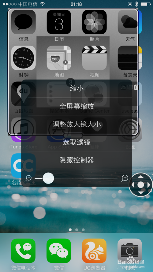 然后找到最下面辅助功能快捷键,打开,选定缩放的功能