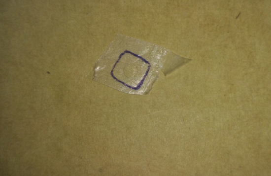我们知道,圆珠笔在塑料上是画不出痕迹的,所以我们可以考虑用一点双面胶覆盖到上面,双面胶是纸的,而且透明,方便下面画记号。