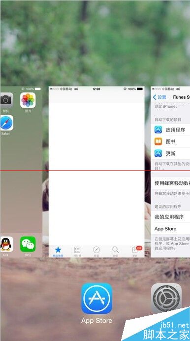 双击iPhone的HOME键,在运行后台中,将App Store向上滑动,退出程序,然后重新打开App Store,看一下问题是否还依然存在。
