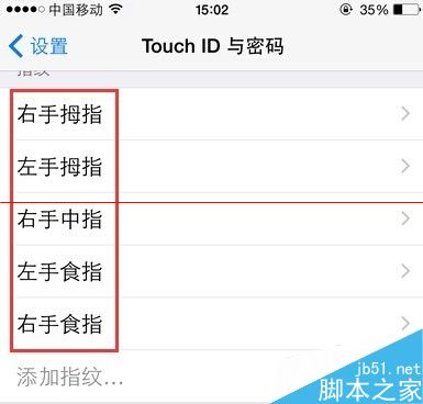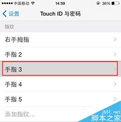 苹果Apple Touch ID指纹密码目前最多可以设置五个手指头的指纹,这些其实不必在于多,而是设置最经常用到的指纹即可,比如左右手的大拇指一般就是触碰HOME键频率最高的手指,接着可能就是食指了。每验证完一个手指指纹,系统默认命名是手指1、手指2、手指3……这样时间一久,就不知道指纹手指N对应的是哪个手指了,如果要某些指纹进行删除,就麻烦了些,需要重新一个个手指去验证辨别才行。那么,事先对指纹所对应的手指进行命名,可以对以后指纹进行删除或者修改就显得方便多了。