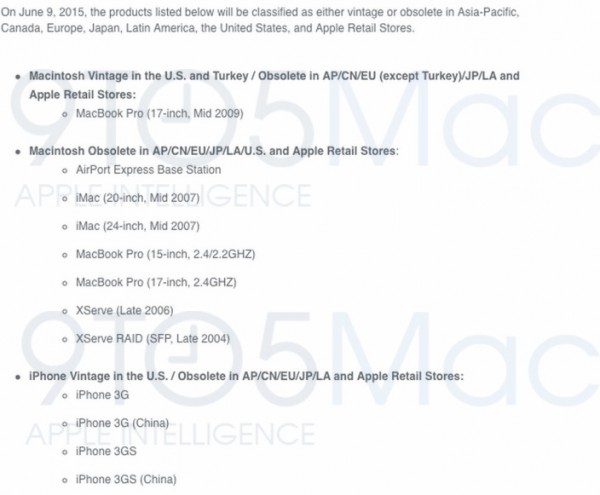 根据内部文档,苹果准备停止支持 iPhone 、Mac 和一系列其他产品,这些产品将逐渐的退出市场,并标记为古董设备。当设备转变为 Obsolete (陈旧)状态后,加利福尼亚州和土耳其要求苹果必须继续提供支持,不过零售店或授权经销商可以停止服务以及维修支持。通常,在设备生产停止后的5-7年后,苹果会将设备标记为“陈旧”。