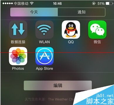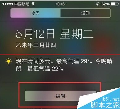 2、安装完成之后,下拉iPhone通知栏,点击页面中的编辑按钮