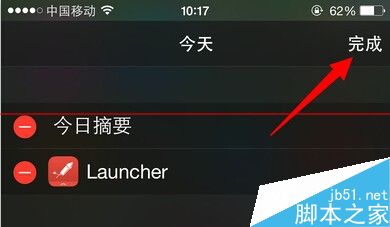 4、这时,Launcher应用程序就被添加到通知栏里面了,我们直接点击右上角的完成按钮,返回到iPhone桌面
