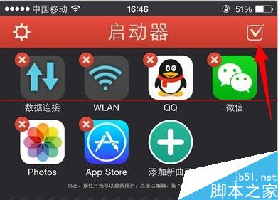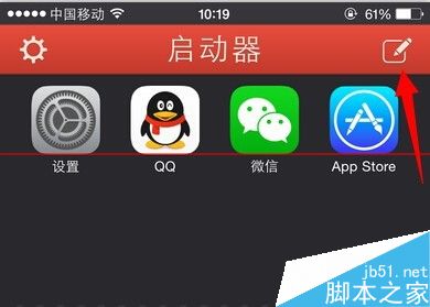 5、在iPhone主屏幕上找到刚刚下载安装的Launcher图标,打开进入Launcher启动器页面,点击右上角的编辑图标