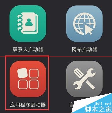7、在打开的页面中,我们可以看到联系人启动器、网站启动器、应用程序启动器以及自定义启动器四个选项,点击应用程序启动器