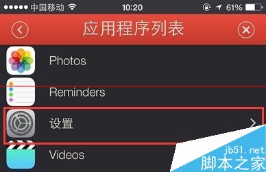8、在打开的应用程序列表中,找到设置栏目点击打开