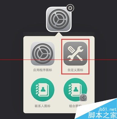 12、这时,在图标下方将弹出一个菜单栏,分别有应用程序图标、自定义图标、联系人图标以及组合图标等四个选项,我们选择应用程序图标