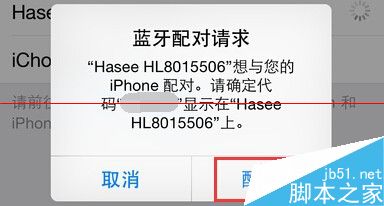 7、如果以上方法依然不能够解决蓝牙问题,那么可以尝试一下在其它蓝牙设备,比如其它手机开启蓝牙,然后搜索自己有蓝牙问题的iPhone手机,然后尝试连接配对请求,如下图所示