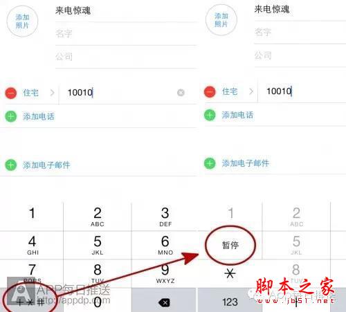 以【联通用户】为例,输入号码10010;再点左下的“+*#”按钮,这时就会出来一个“暂停”按钮;