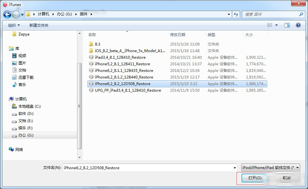 3、按住键盘上的 shift 键 iTunes 上的“恢复”,选择iOS8.2固件下载