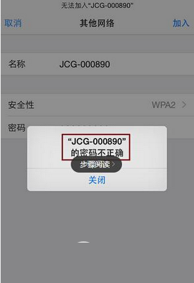 7.如果安全性选择错误或者密码输入不正确,iPhone会给出错误提示,这样您需要重新选择正确的安全性并且输入正确的WiFi密码才能再次尝试连接。