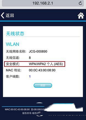 事实上,当我进入“系统信息”-“无线状态”查看的时候,确实是WPA/WPA2混合加密的安全模式,这也是很多路由器常见的WiFi安全模式。